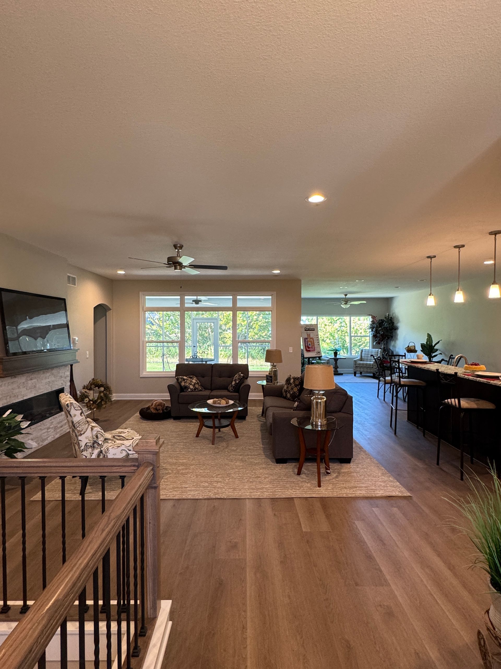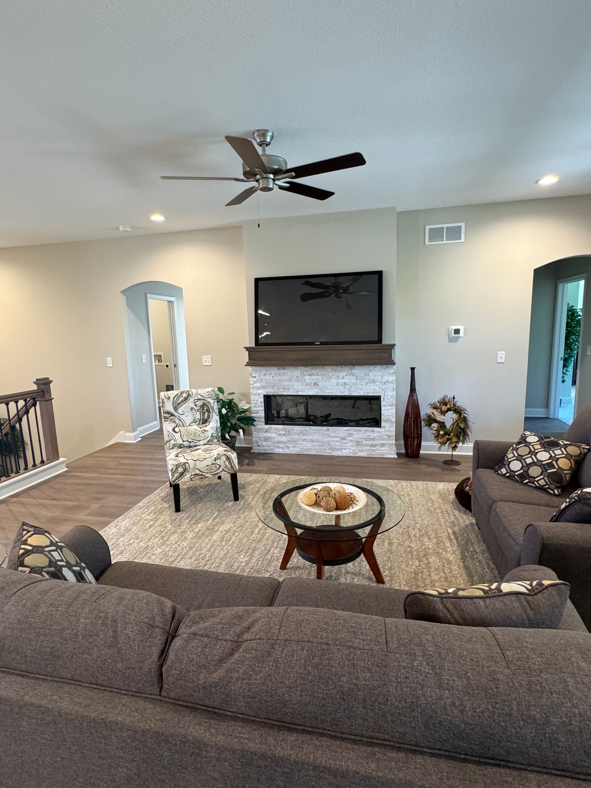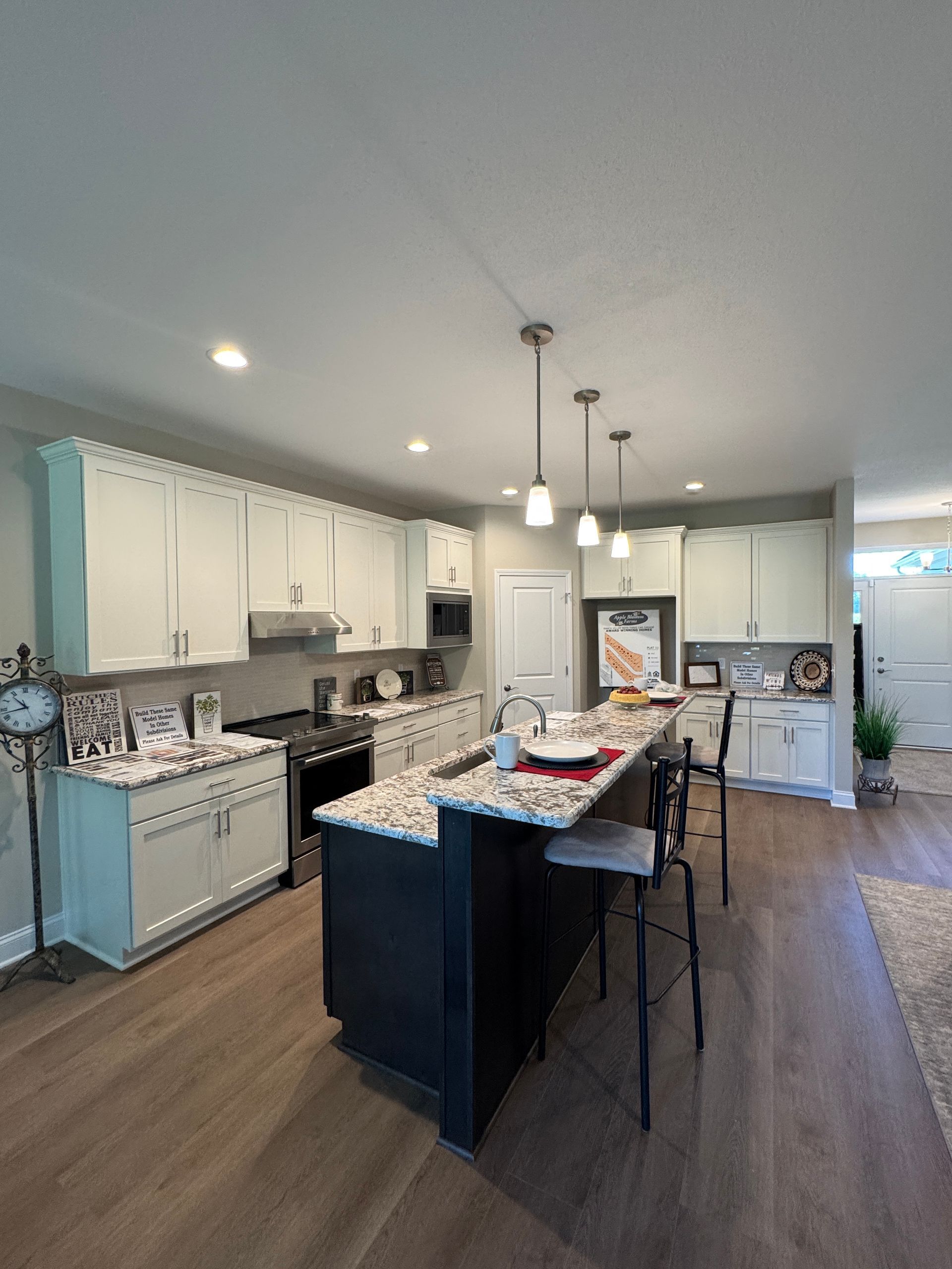 KITCHEN HAS ISLAND WITH RAISED SNACK BAR, LARGE WALK IN PANTRY, BEAUTIFUL GRANITE COUNTERTOPS, GREATROOM HAS LINEAR ELECTRIC FIREPLACE WITH STACK STONE SURROUND AND MANTEL. MSTR BATH INCLUDES HIS/HER VANITIES AND A MAKEUP AREA, CUSTOM TILE SHOWER WITH GLASS BLOCK WINDOW, LARGE WALK-IN CLOSET AND PRIVATE STOOL AREA. LVP RUNS THROUGH MAJORITY OF HOME WITH CARPET IN BEDROOMS AND TILE IN BATHROOMS. THERE IS A GROUND LEVEL PATIO OFF THE SCREEN PORCH TO SIT AND ENJOY THE BEAUTIFUL TREE LINED REAR YARD AND CREEK.