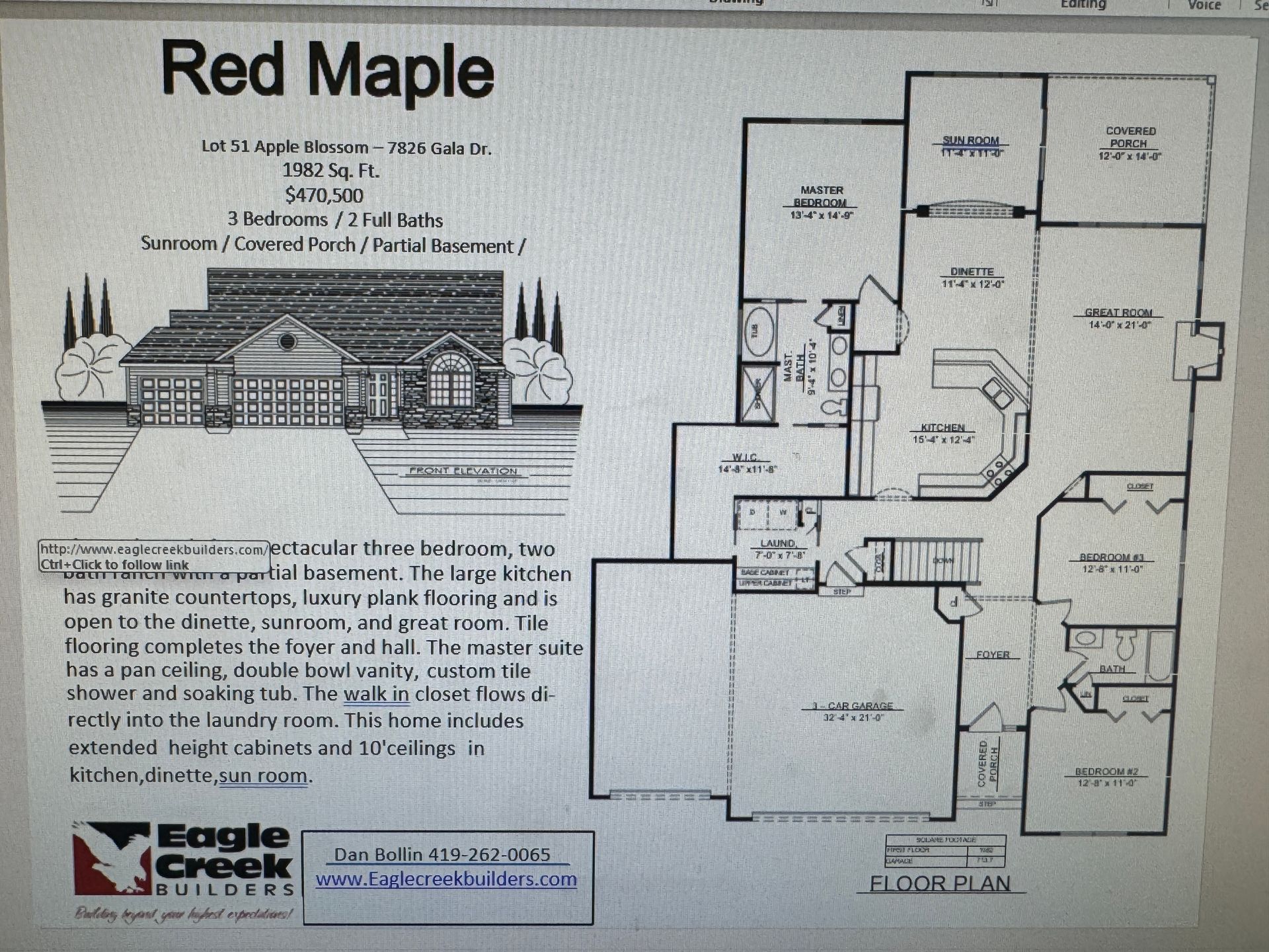 3 BR 2 BATH RANCH WITH 10 FT ENTRY, GREAT ROOM, KITCHEN, DINETTE AND SUNROOM LARGE PARTIAL BASEMENT. LARGE CUSTOM KITCHEN, GRANITE TOPS & RAISED SNACK BAR, TILE AND LUXURY VINYL PLANK FLOOR, GET INSIDE TO APPRECIATE THIS BEAUTIFUL, ENERGY EFFICIENT HOME